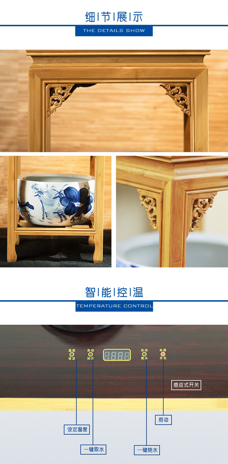 天然毛竹材質,堅韌、簡約、質樸;高硼硅玻璃壺,通透明亮、線條優美流暢;手繪陶瓷缸,古典優雅、光澤耐久。